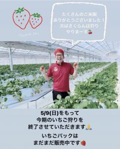 【5/9(日)まで】今期いちご狩り終了のお知らせ