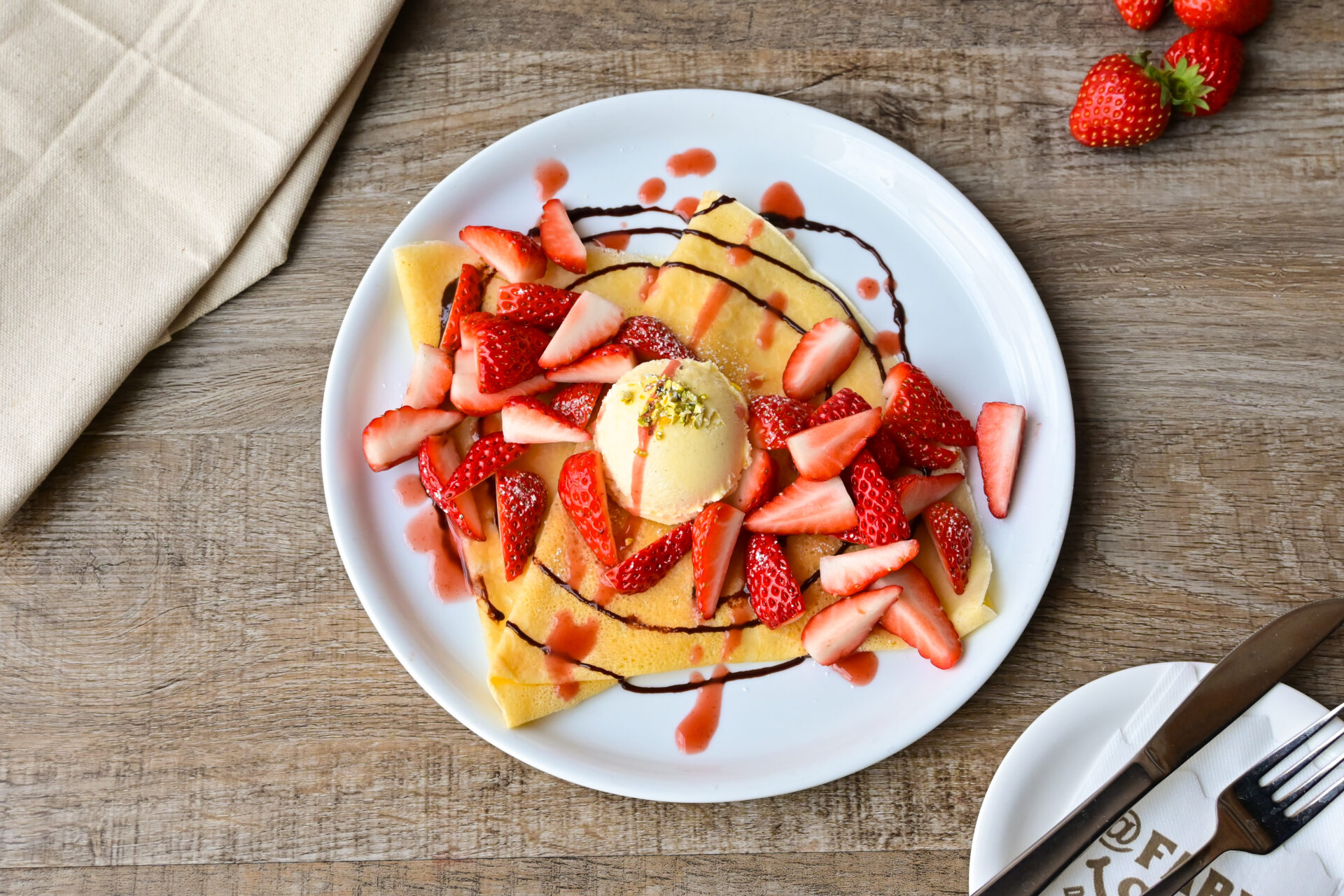 【期間限定】たっぷりいちごのクレーププレートもっちりとしたクレープに、たっぷりといちごをのせちゃいました。